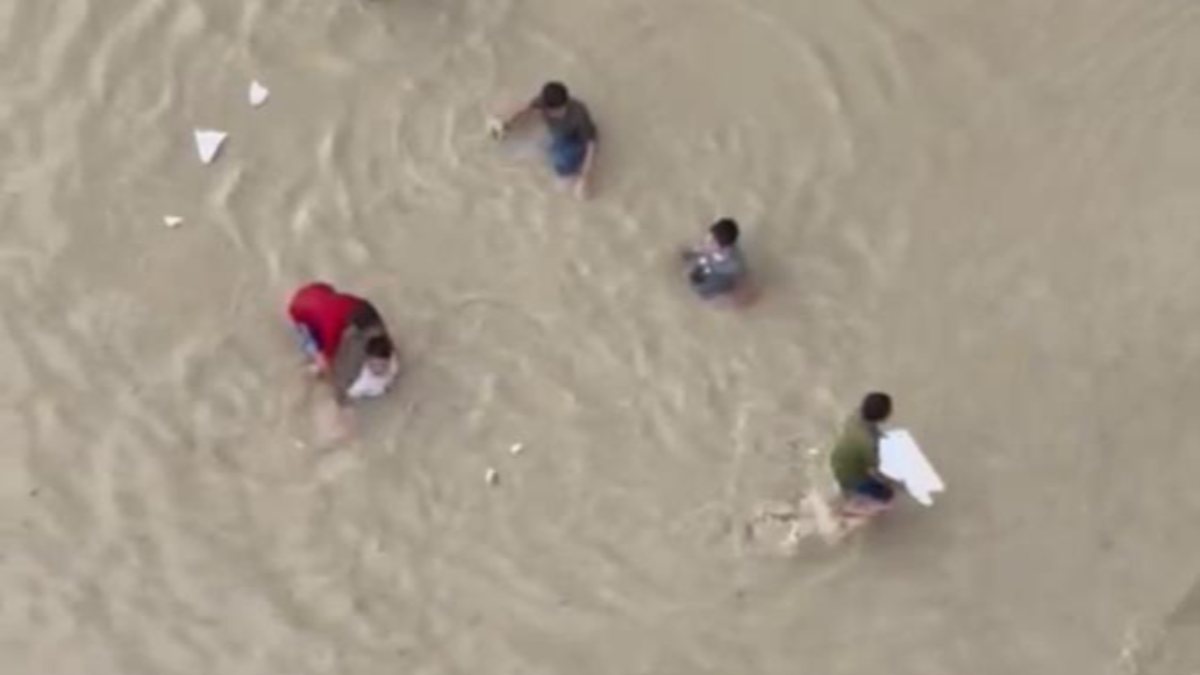 Sağlıklarını hiçe sayan çocuklar çamurlu suya aldırış etmeden yüzdüler.