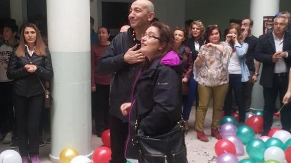 Muharrem öğretmen, öğrencileri tarafından balonlar, konfetiler, alkışlar ve sevgi gösterileri ile karşılanmıştı.