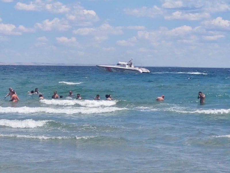 Karadan ve denizden eş zamanlı olarak yürütülen uyarılar sonrası bazı vatandaşlar denizden çıkarak sahile dönerken, ekipler denetimlerini gün boyu sürdürdü.