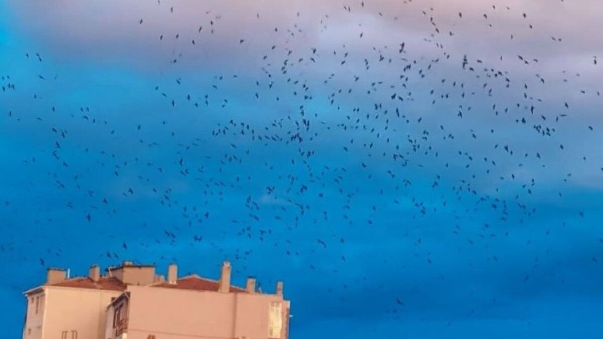 Gökyüzünde kalabalık karga sürüsünü gören vatandaşlar hayretler içerisinde kaldı.