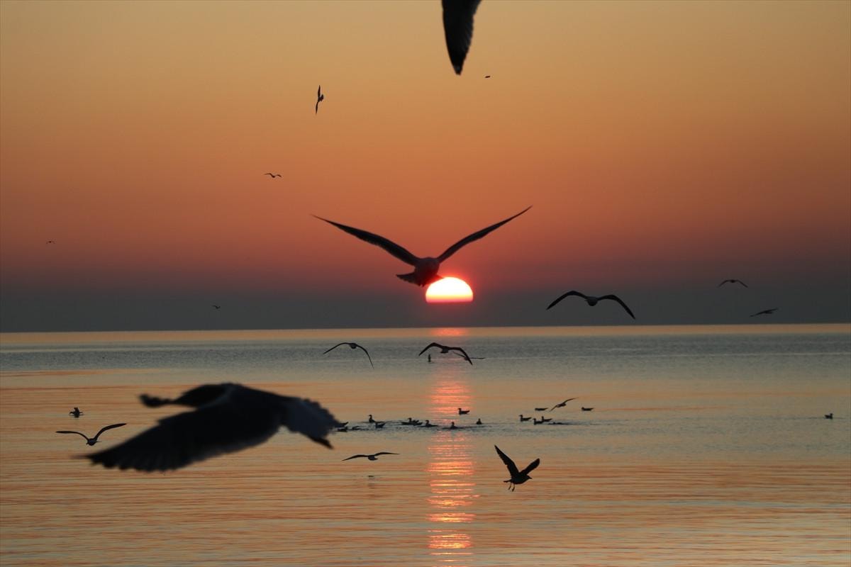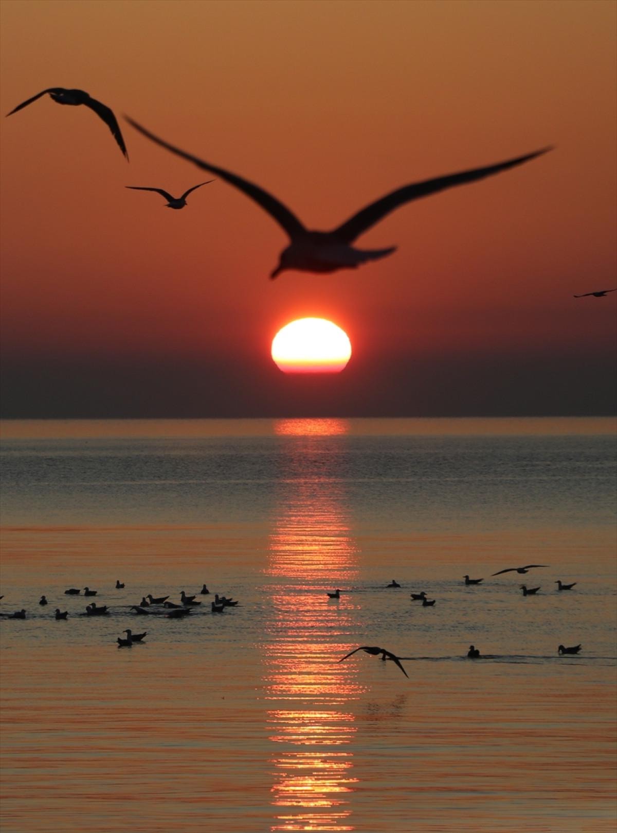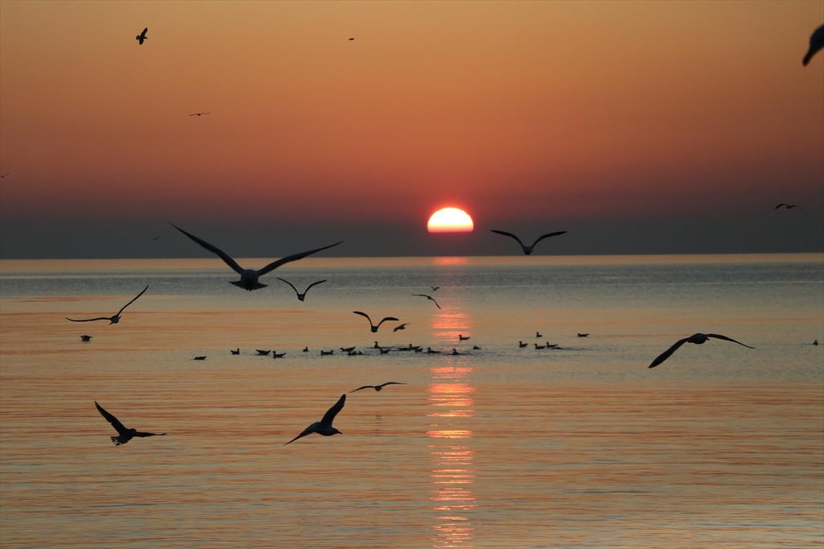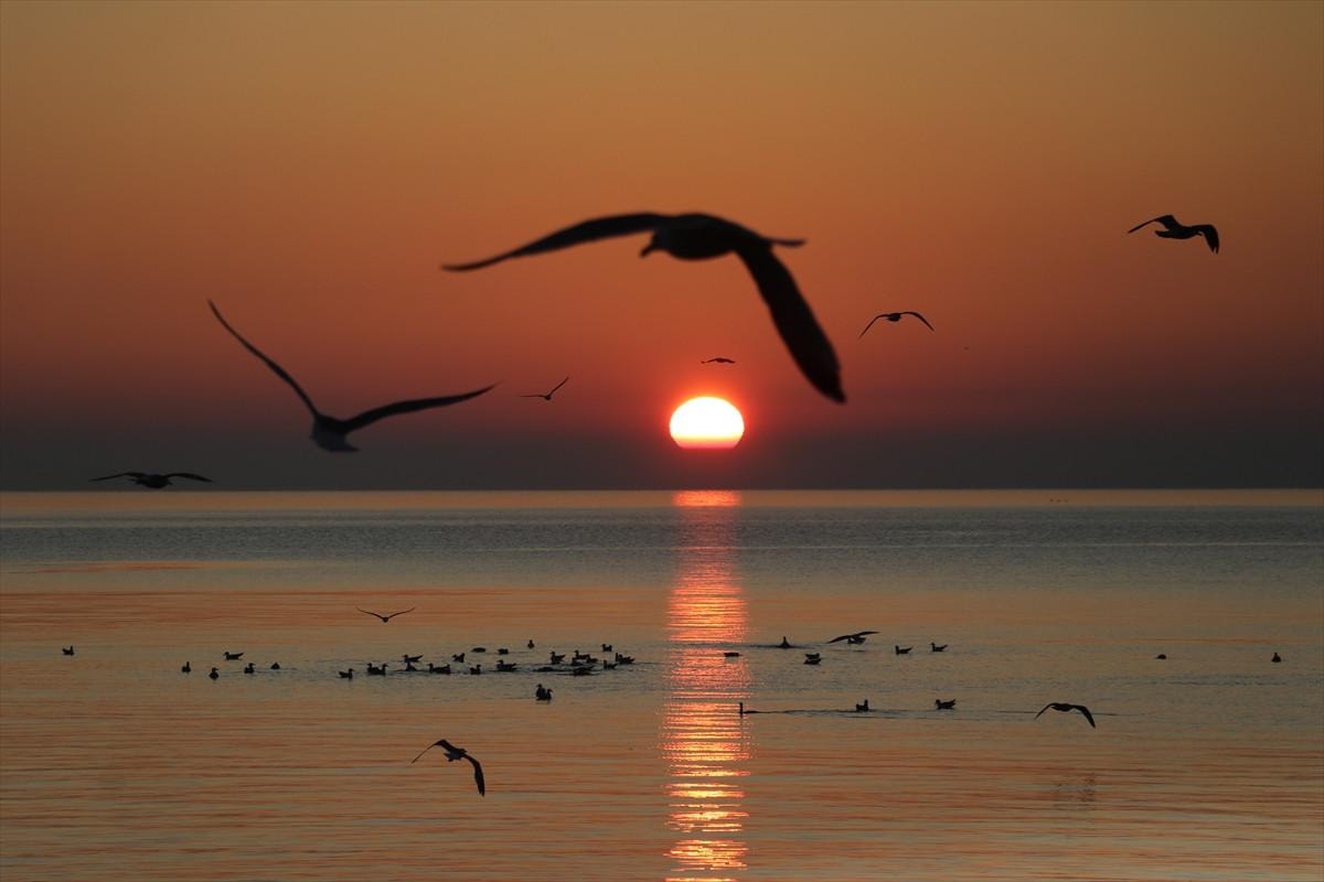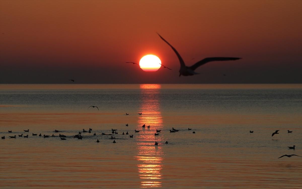 Tekirdağ'da gün doğumu, Marmara Denizi'nin kenarında muazzam bir manzara sundu.