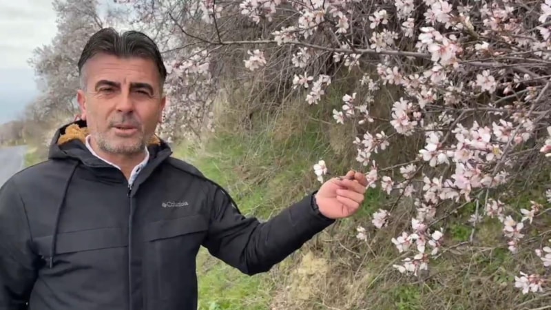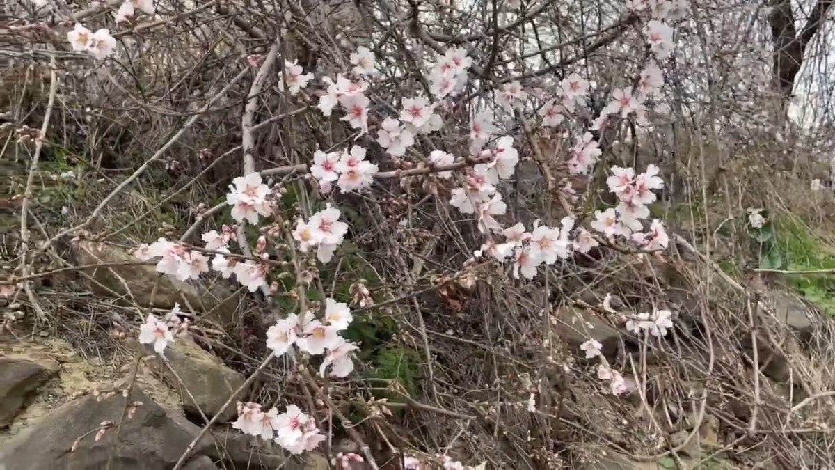 Doğanın adeta ikiye bölündüğü mahallede Şubat ayında ağaçlar çiçek açtı.