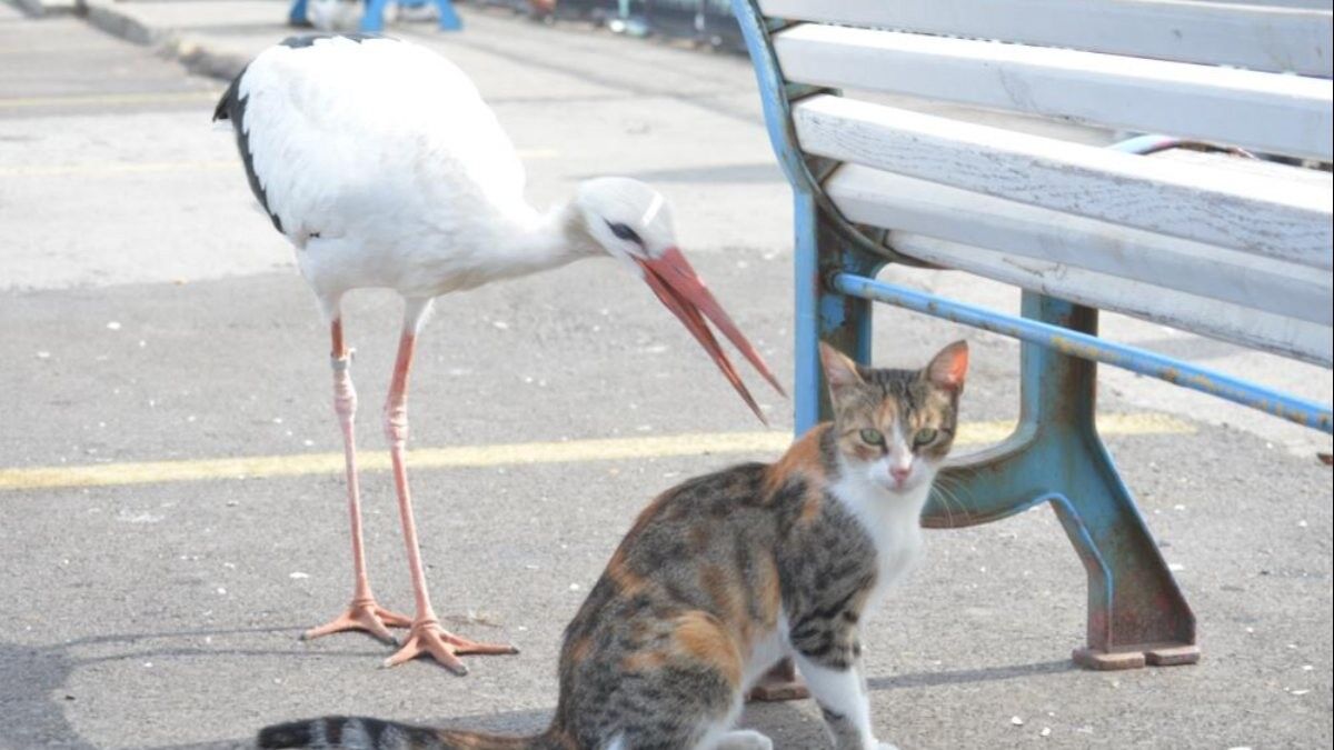 "Kediler leyleğin ağzından balık almaya çalışıyorlar"