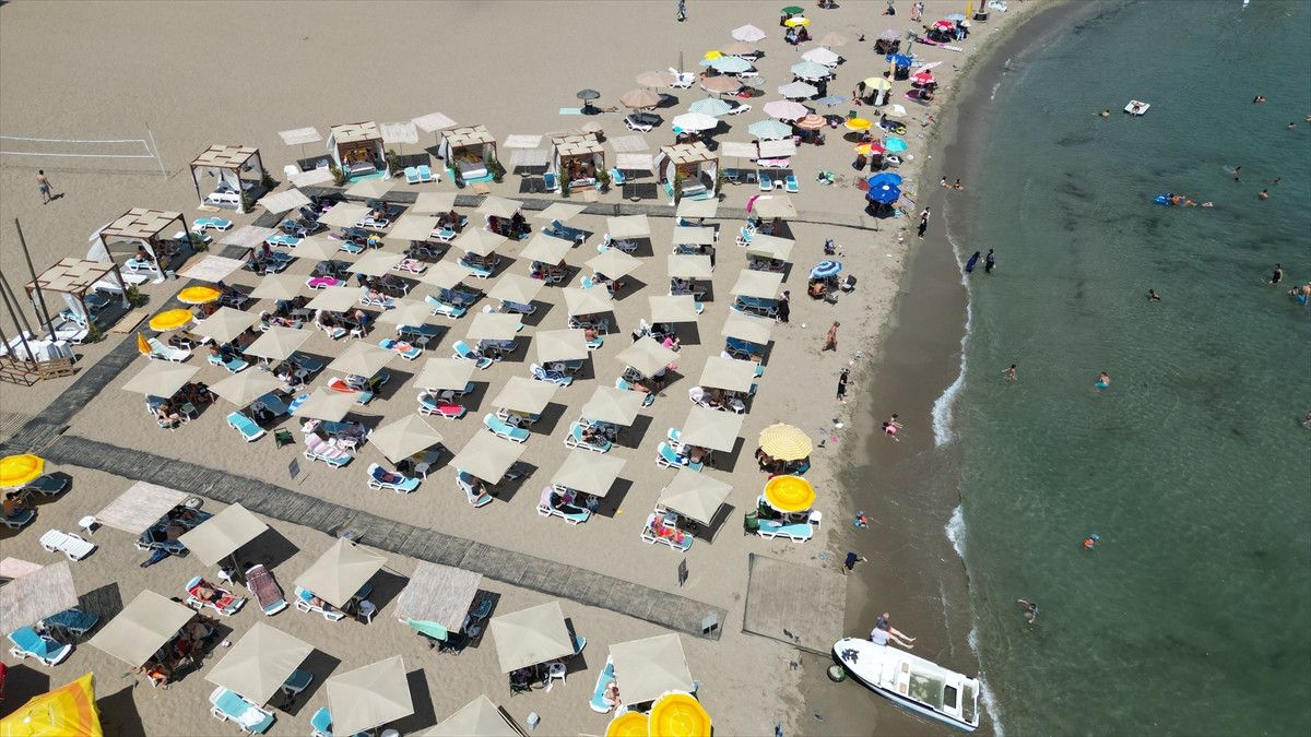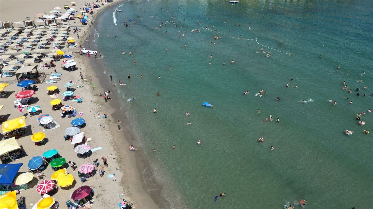Hava sıcaklığının 32 derece ölçüldüğü kentte yüksek nem nedeniyle hissedilen sıcaklık artarken, yerli ve yabancı turistler plajları doldurdu.