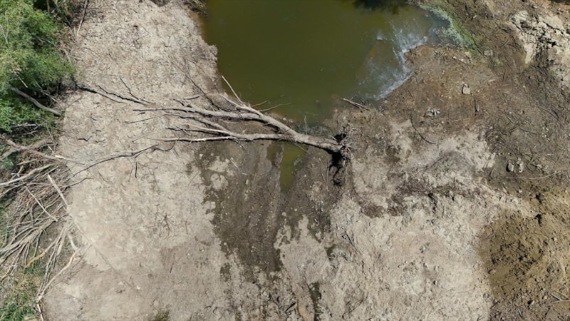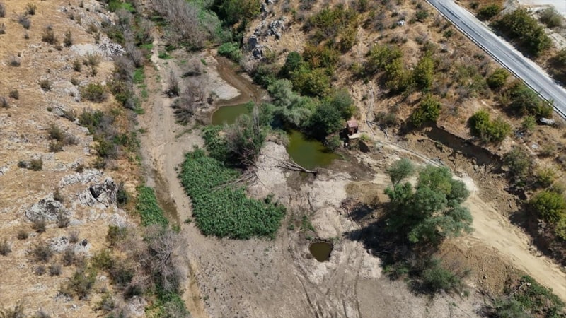 Suyu çekilen dere yatağında çatlaklar oluşurken, derenin bazı bölgelerinde ise otların yeşerdiği gözlemlendi.