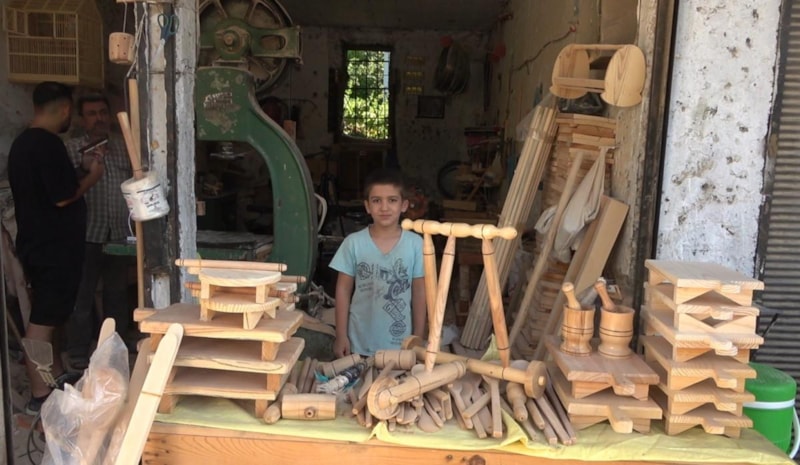 Eskisi gibi artık yürütece fazla rağbet olmadığı için sipariş usulü çalıştıklarını söyleyen Ali İğneci, "Depremde kötü etkilendik, iş yerimiz hasar gördü. Kiracıydık ama iş yeri bulamadık, depremin etkisiyle her yeri yıkıldı Osmaniye'de bundan dolayı yani bu küçük gördüğünüz yeri tuttuk. Burayı da bulmasam artık bırakma seviyesine gelmiştim. Genelde hamur işleri, oklava, merdane yapıyorum.