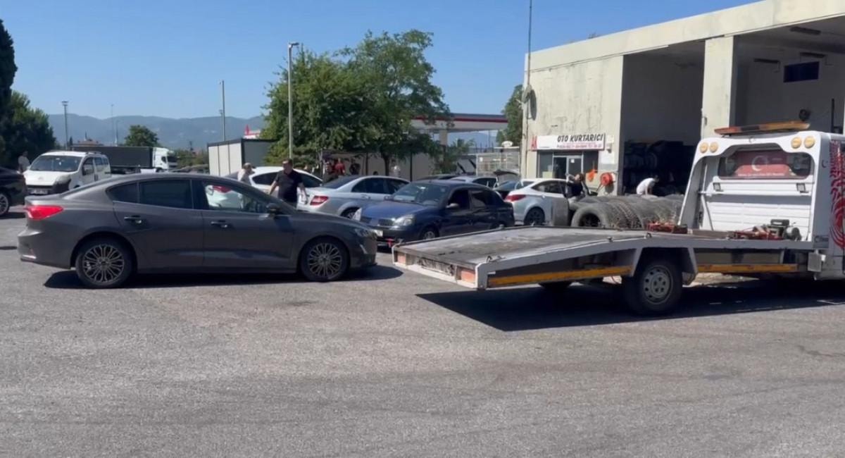 Lastiği patlayan sürücüler, en yakın akaryakıt istasyonunda bulunan oto lastikçiye akın etti.