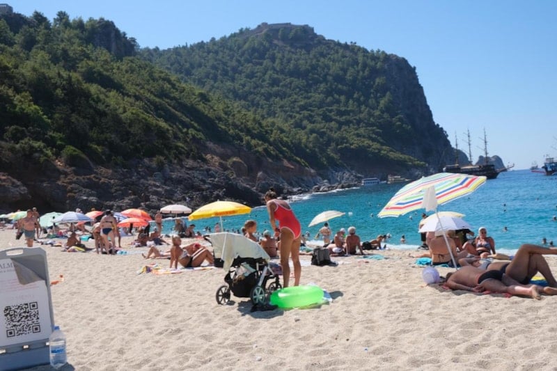 Hava sıcaklığının 32 dereceyi bulduğu Alanya'da ise okulların açılmasıyla sahiller tamamen turistlere kaldı.
