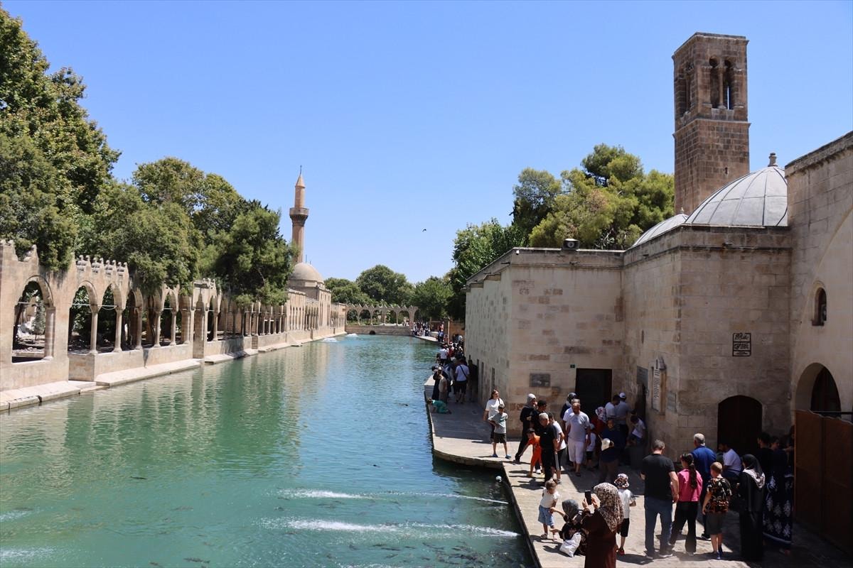 Atatürk Bulvarı'nda bulunan termometre 51 dereceyi gösterirken sıcaktan korunmak isteyenler, Balıklıgöl Yerleşkesi'nde, yeşil alanlarda, parklarda ve ağaç gölgeliklerinde serinlemeyi tercih etti.