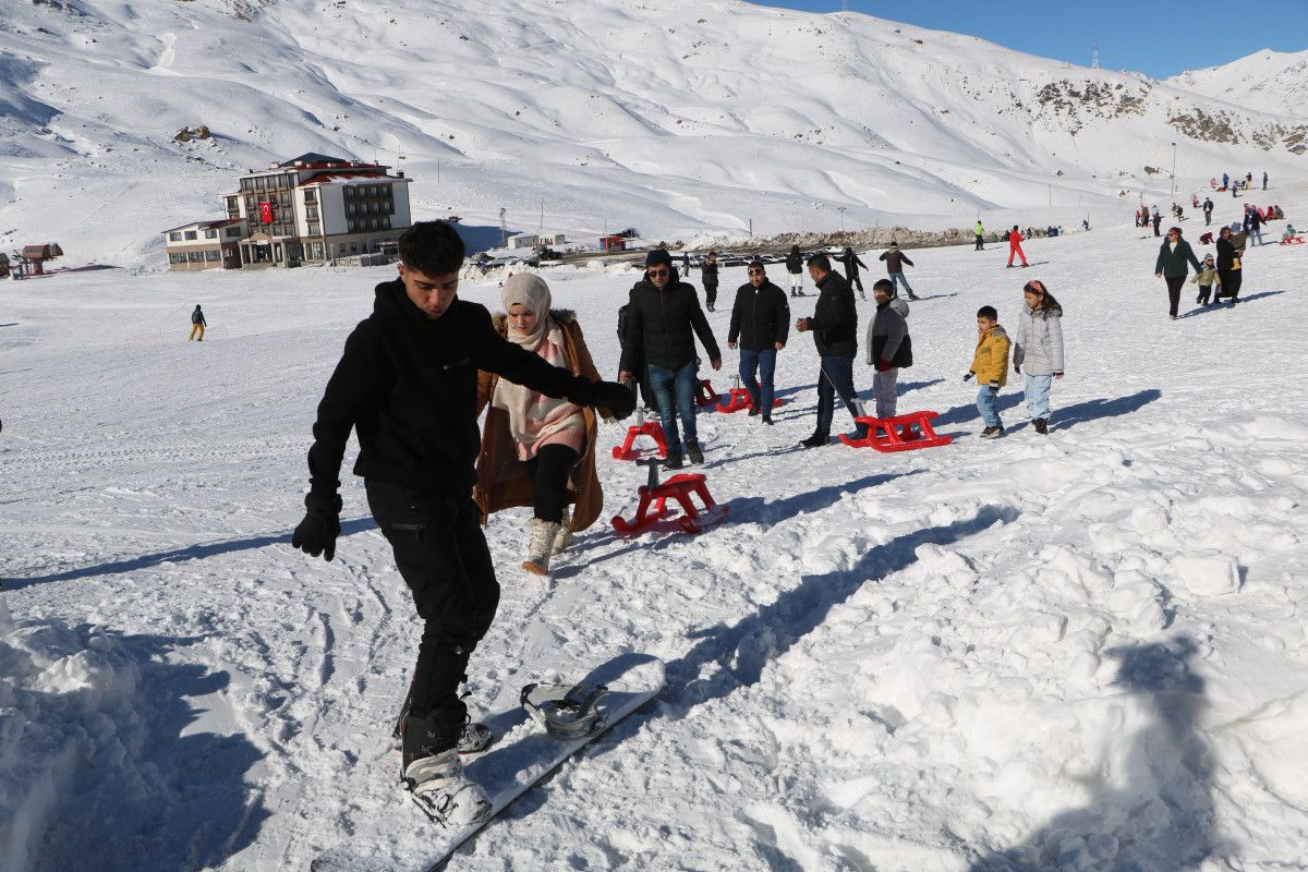 Kar kalınlığının 65 santimetre olduğu merkezde kayakseverler, kayak ve snowboard yaparken, kayak yapmayı bilmeyenler ise kızaklarla kaydı.