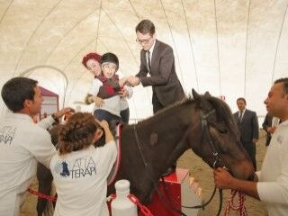 “Engelleri At’la Terapi ile aşalım” sloganı ile 2015 yılında ücretsiz olarak hizmete açılan At’la Terapi Merkezleri’nde bugüne kadar 3 binin üzerinde çocuğa uzmanlar eşliğinde atla terapi seansları yapıldı. Merkezlerde, özel olarak yetiştirilmiş atlar ve uzman terapistler eşliğinde uygulanan terapatik seanslarla fiziksel, zihinsel ve duygusal bozukluğu olan çocukların gelişimine katkı sağlanması amaçlanıyor. Doktor raporuyla At’la terapi yapılmasına izin verilen tüm engelli çocukların faydalanabileceği bu yöntem; atın klasik metodolojisi üzerine kurulu hareketini, uzman terapistin yöntemleriyle birleştirerek kişiye özel destekleyici bir terapi yöntemi olarak uygulanıyor.