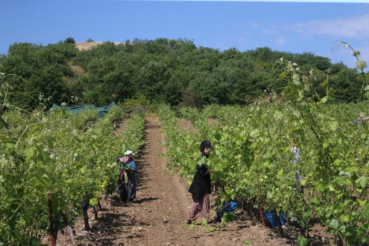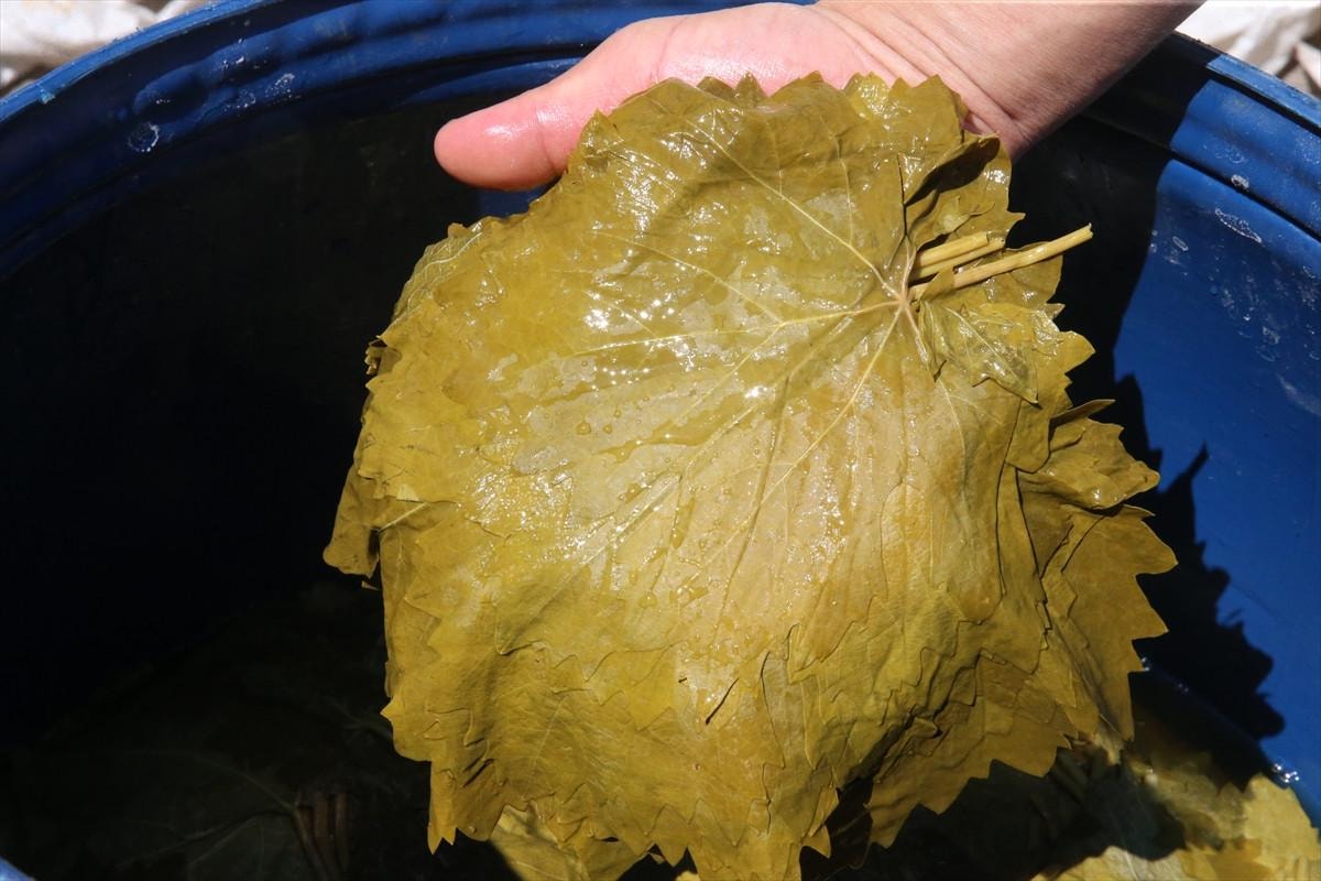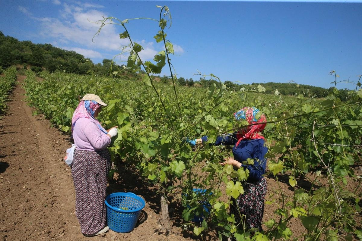 Tokat'ta coğrafi işaretli "narince" bağ yaprağının hasadı devam ediyor.