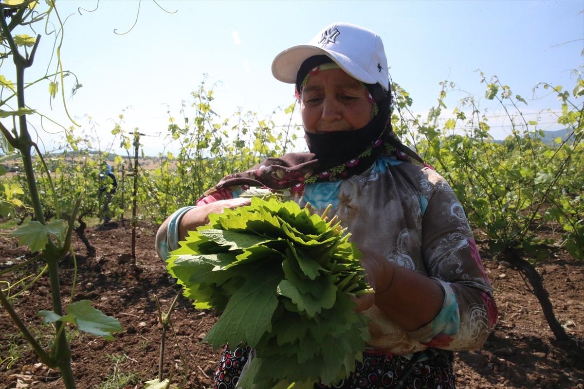 İşçilerden Nahide Aslan da 10 yıldır yaprak topladığını vurgulayarak, "Sabah saat 05.00 gibi başlıyoruz yaprak toplamaya, 12.00'de bırakıyoruz işi. 35 kadın bağda yaprak topluyoruz, yeri geliyor 40 kişi oluyoruz." diye konuştu.