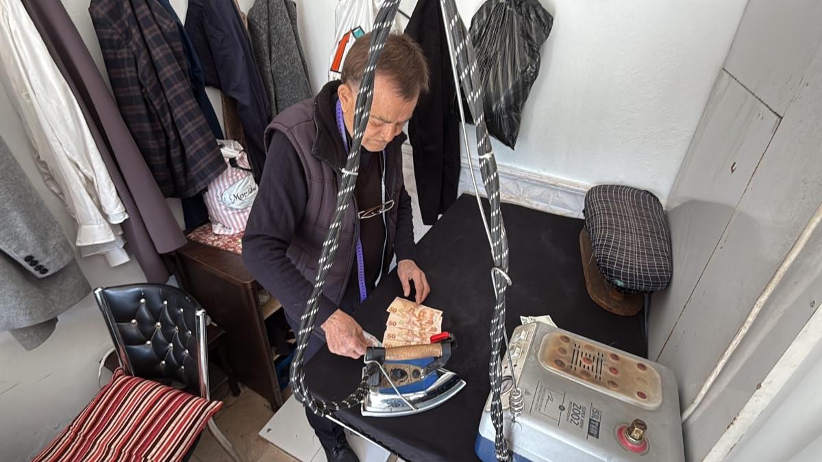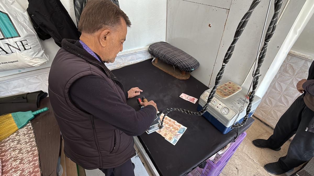Kendi iş yerimi 1978 yılında açtım. O yıldan itibaren paramı ütülerim. Hep usul böyledir. Niye diyecek olursanız herkesin elinde mikrop oluyor. Bir de elin gavur paralarını tap taze tutuyorlar. Bizim paralarımıza gelince de yazı yazıyorlar. Her müşterimi de uyarıyorum. Lütfen kendi paramıza dikkat edelim, sahip çıkalım. Parayı aldığım zaman da verdiğim zaman da ütüleyerek veririm. Bizde usul böyledir.