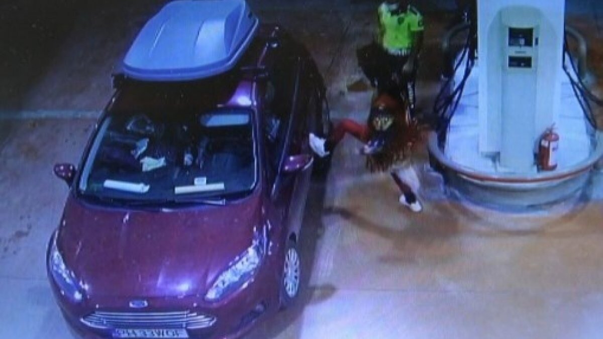 Pompa görevlileri yabancı uyruklu kadınla iletişim kurmakta zorlanırken devreye polis ekipleri girdi. Bu sırada spor hareketleri yapmaya başlayan kadın otomobilini ayağı ile tekmeleyerek etrafında dolaşmaya başladı. Daha sonra eli ile otomobiline dokunarak tuhaf hareketler yapan kadının o anları güvenlik kameralarına yansıdı.