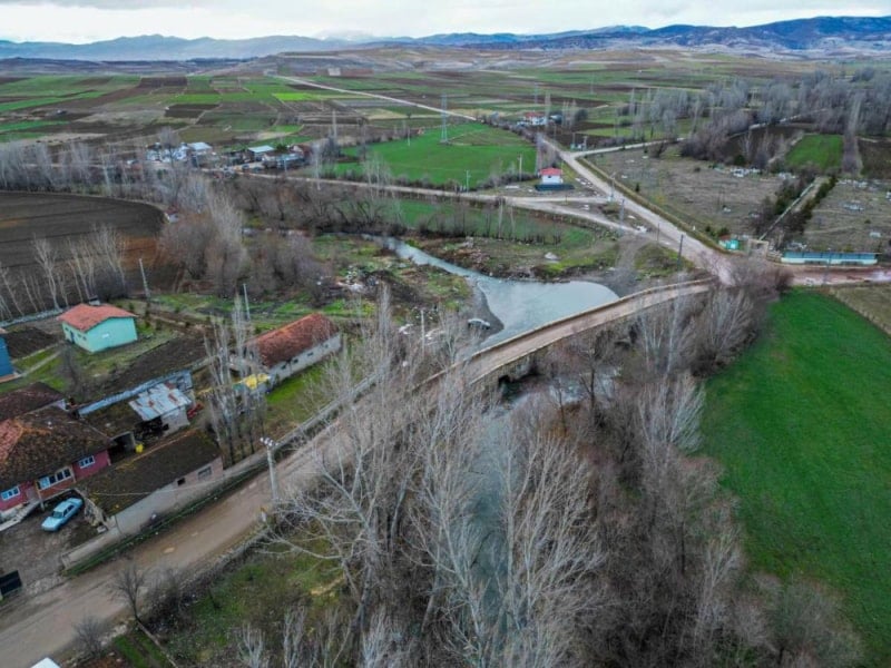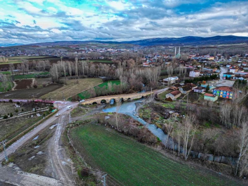 Çekerek Irmağı üzerinde bulunan ve Roma dönemine ait 2 bin yıllık köprü tarihe tanıklık ederken, köprünün araç trafiğine de açık olması dikkati çekiyor.