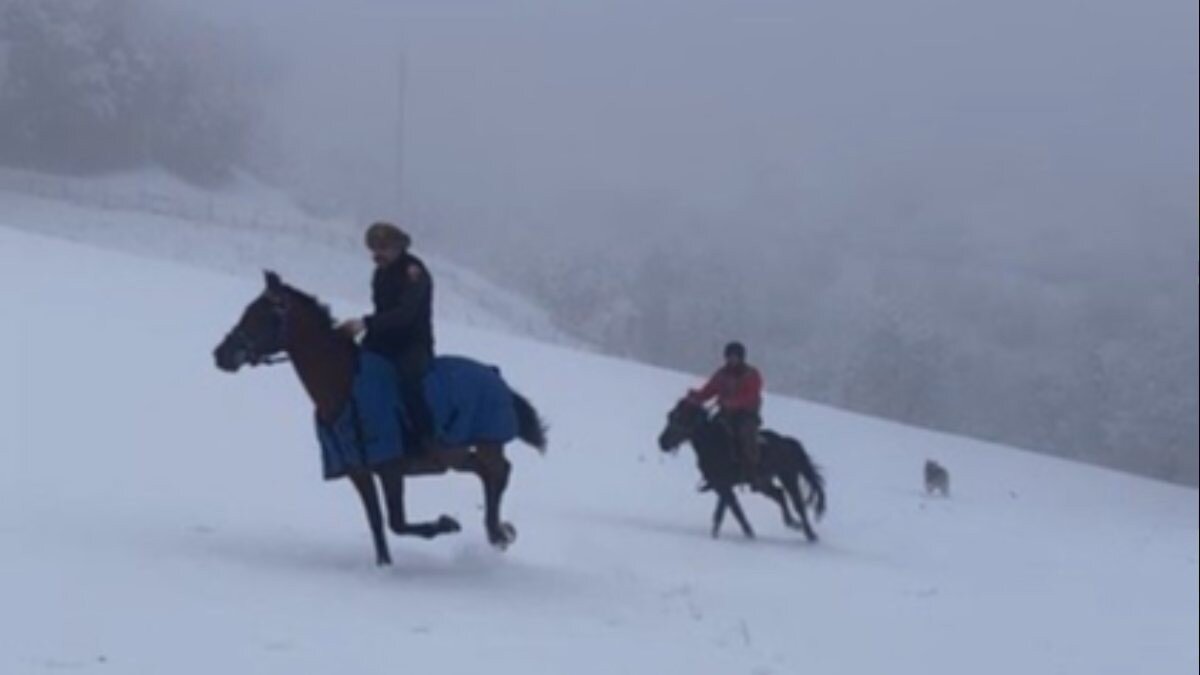 Karda atlı safari, renkli görüntüler oluşturdu.