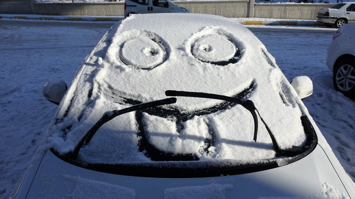 Durumdan kendilerine eğlence çıkartan çocuklar, karla kaplı araçların ön camlarına eğlenceli şekiller çizdi. Çocukların çizdiği şekiller görenleri gülümsetirken, otomobiller renkli görüntüler oluşturdu.