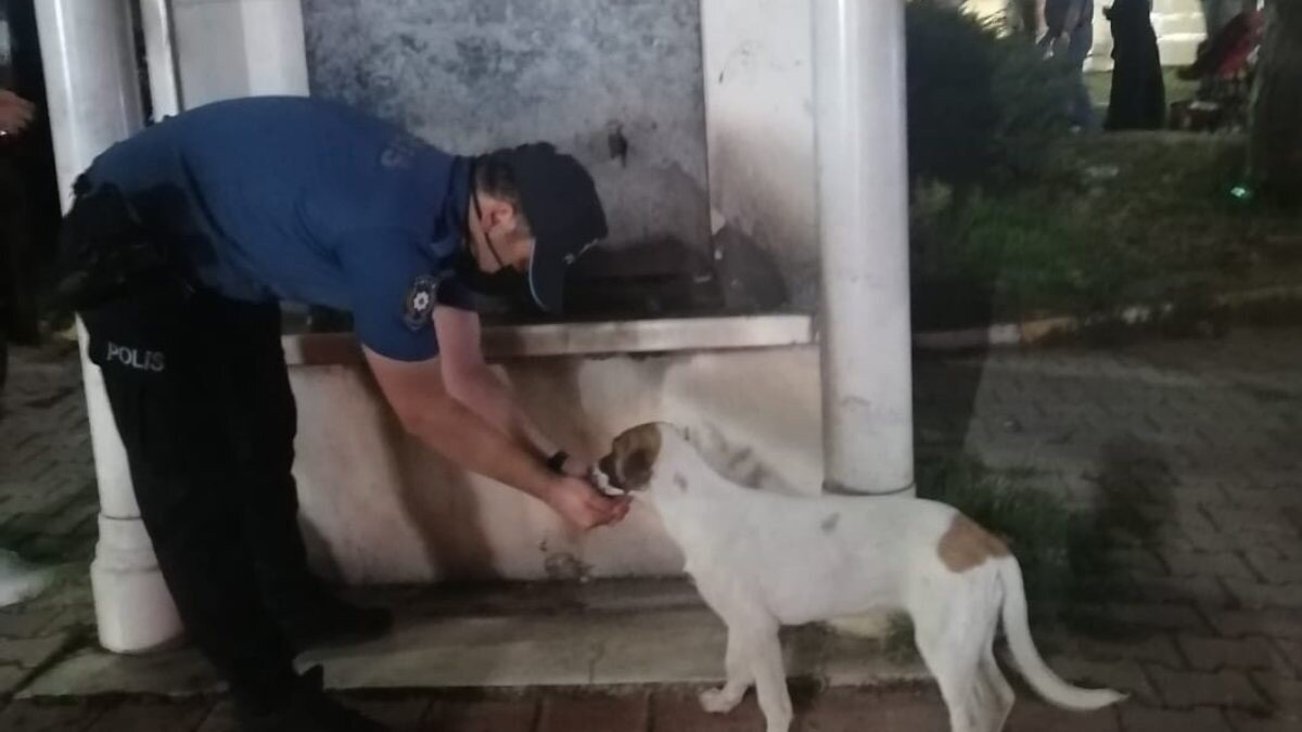 Tokat'ın Zile ilçesinde 30 yaşındaki görevli 4 yıllık polis memuru Serhat Büyük'ün yanına sokak köpek geldi.