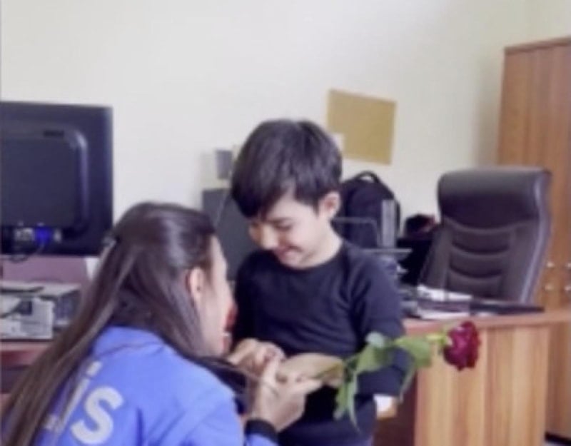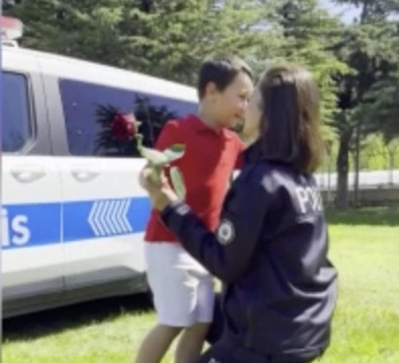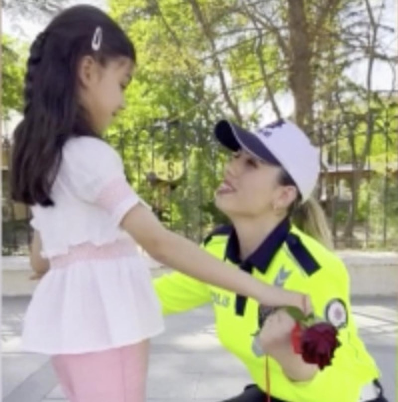 Videoda; kentte görev yapan kadın polislere, görev başındayken kendi çocuklarının sürpriz yaparak gül vermesi ve Anneler Günü'nü kutlamaları yer alıyor.