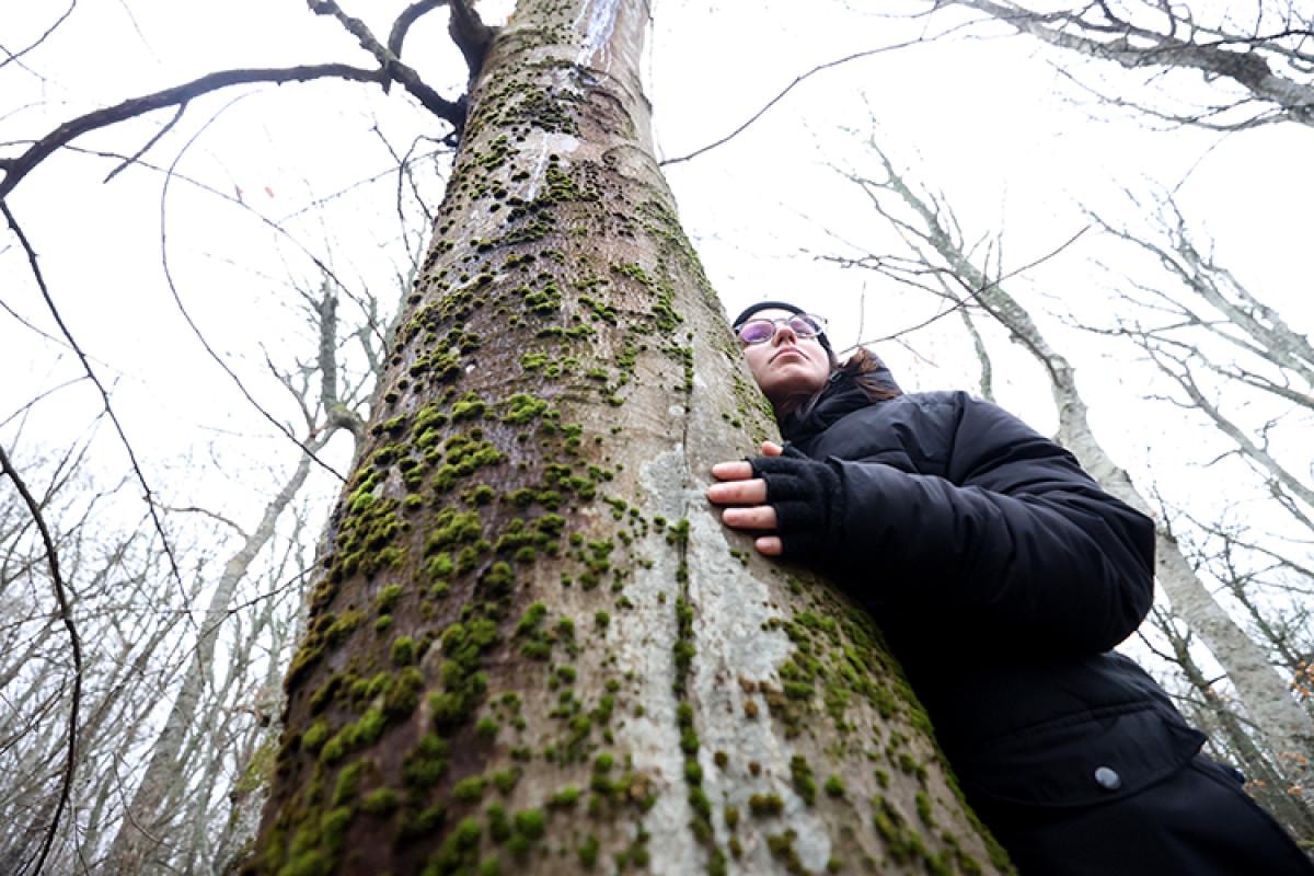 Daha sonra katılımcılar ağaçlara sarılarak, yaprakları ve dalları inceleyerek doğanın derinliklerine yolculuk yapıyor. Ergüven, "Ağaçların kalbi yok ama nabızları var; insanları hissedebiliyorlar. Katılımcılarımızdan, seçtikleri bir ağaçla iletişim kurmalarını, onu dinlemelerini istiyoruz" dedi.