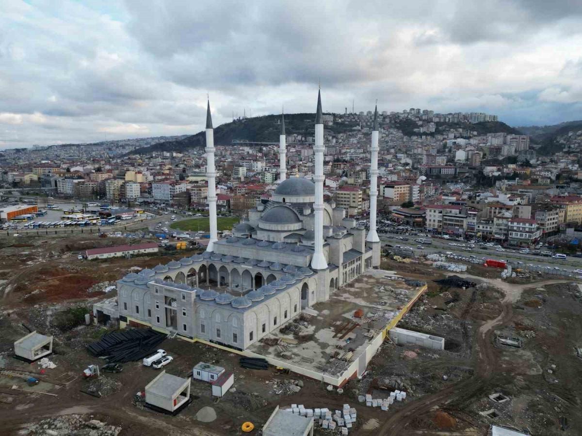 Trabzon Şehir Camii ve Külliyesi'nin kaba inşaatı ve dış cephesi tamamlanırken iç kısımlarındaki çalışmalar sürüyor.