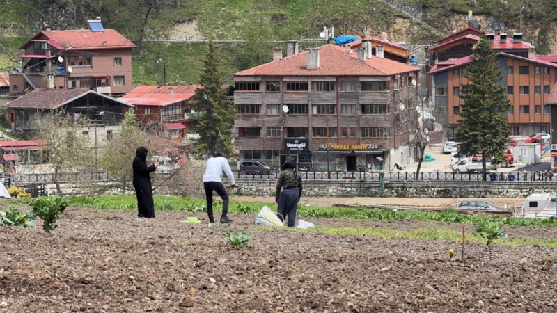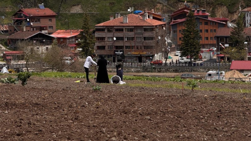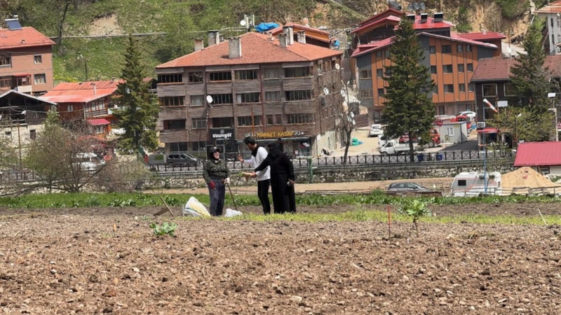 Trabzon’un turizm merkezi Uzungöl'ü gezmeye gelen Arap turistler, tarlada mısır eken vatandaşlara hurma dağıttı ve tarla belleyerek yerel halka yardımcı oldu.