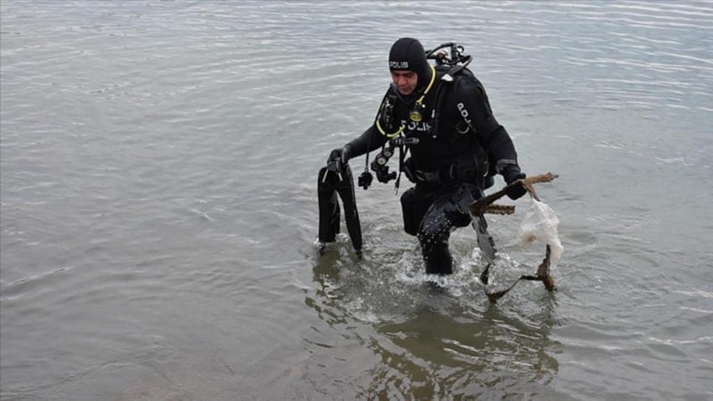 Trabzon'da dalgıç polisler, antrenman yaptıkları yerlerde deniz canlılarına zarar veren çöpleri ve hayalet ağları toplayarak çevre duyarlılığı gösteriyor.
