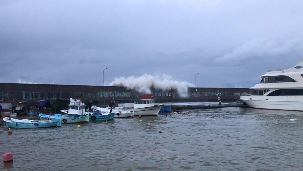 Dalgaların limana ulaşması sonucu balıkçı teknesi de suya gömülmüştü.