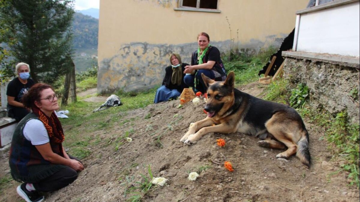 Güven’in yakınları sevimli köpeğin bir an olsun mezardan ayrılmadığını, saatlerce beklediğini belirtiyor.
