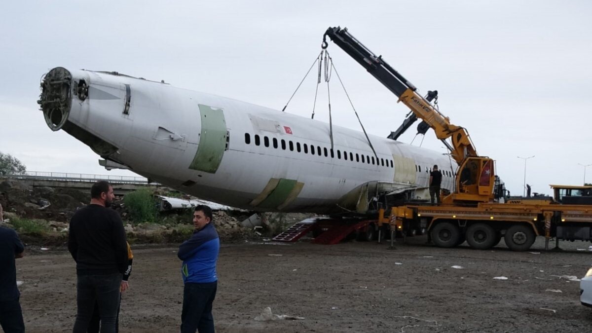 Uçak, özel hazırlanan vinç ve tır yardımıyla, Yomra ilçesine götürülerek, pazar yerine konuldu. Ancak Boeing 737-800 tipi yolcu uçağı, aradan geçen zamanda kaderine terk edildi.