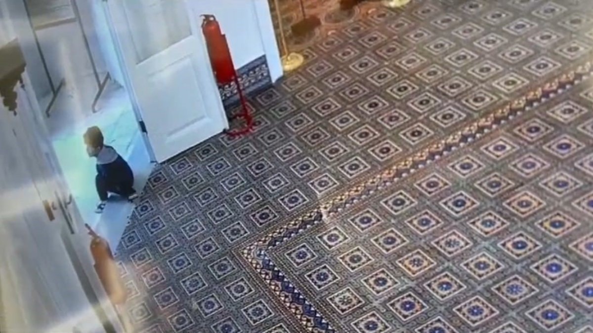 Köşkün girişinde biriken ayakkabılar ilginç görüntüler oluştururken, o anlar güvenlik kameralarına yansıdı.