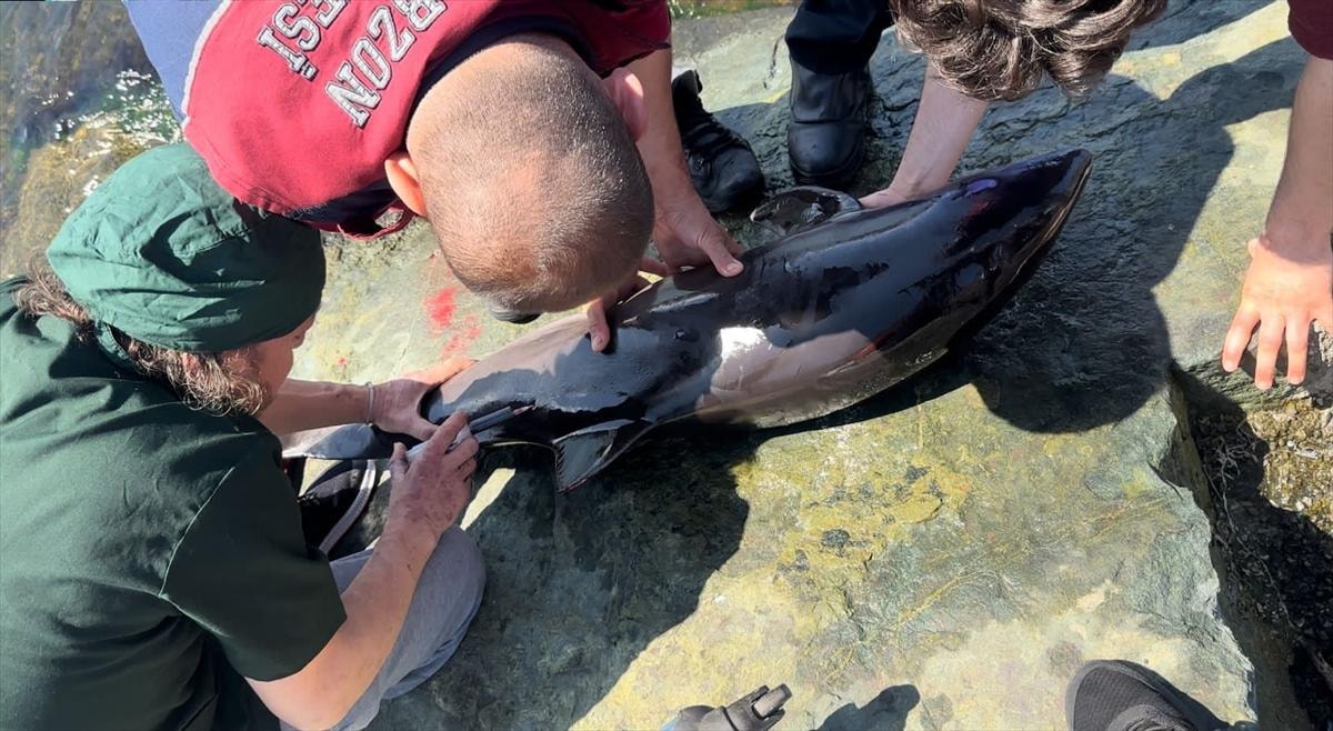 Yavru yunusun yaralı olduğunun belirlenmesi üzerine Doğa Koruma ve Milli Parklar Müdürlüğüne bilgi verildi.