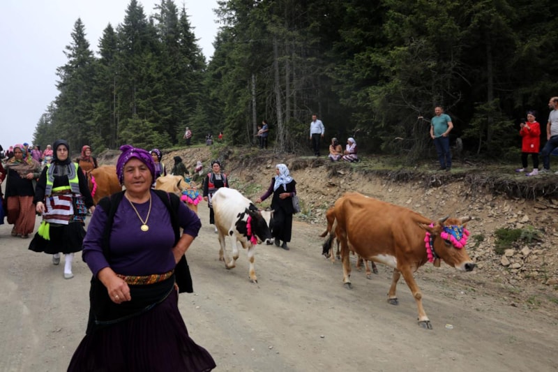 Bu yıl 5'incisi düzenlenen yayla göçü şenliğinde, yöresel kıyafetlerini giyen köylüler süsledikleri büyükbaşlarla davul, zurna ve kemençe eşliğinde Büyük Oba Yaylası'na doğru yola çıktı.