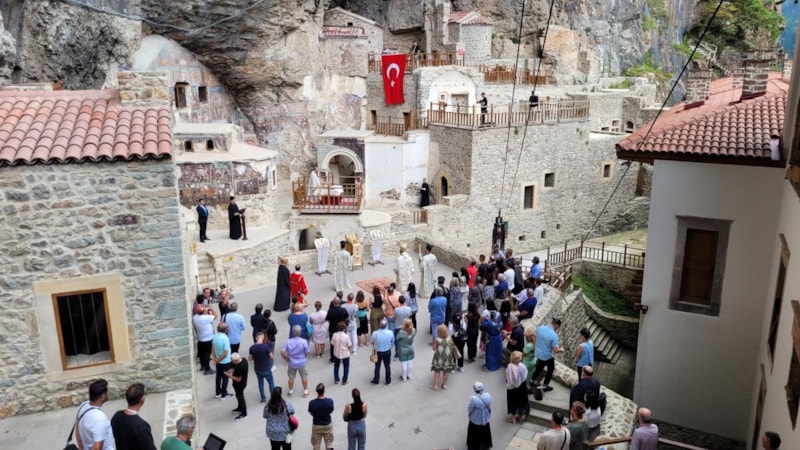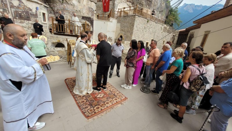 Maçka'da bulunan Karadeniz'in en önemli yapılarından biri olan tarihi Sümela Manastırı'nda, Gelibolu Metropoliti Stefanos Dinidis’in yönettiği 11'inci ayin yapıldı.