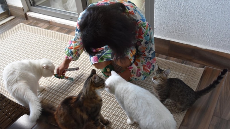 “Onların da yaşama hakkı var. Onları da Allah yarattı, nefes alıp veriyorlar” diyen Özkan, imkânları ölçüsünde sokak kedilerinin bakımını da üstlendiğini belirtti.