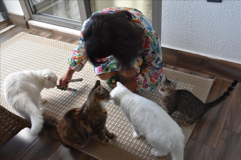Trabzon’un Akçaabat ilçesinde yaşayan bir çocuk annesi Pınar Özkan, 5 yıl önce arkadaşı aracılığıyla sahiplendiği “Pamuk” isimli kediyle başlayan serüveninde, zamanla hayvan sevgisini daha da derinleştirdi. Başta tereddütleri olmasına rağmen, kedilere olan ilgisinin arttığını fark eden Özkan, sahipsiz “Safinaz” ve “Sakız” adlı kedilere de kapılarını açtı.