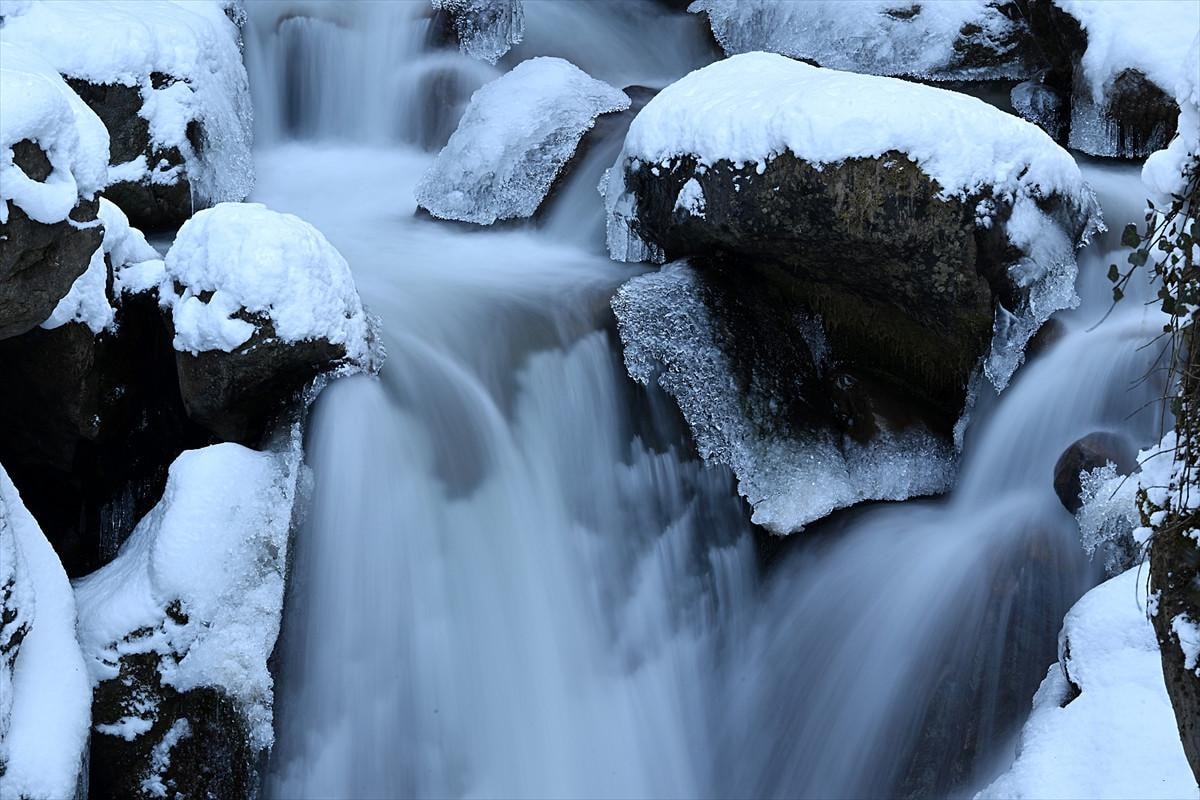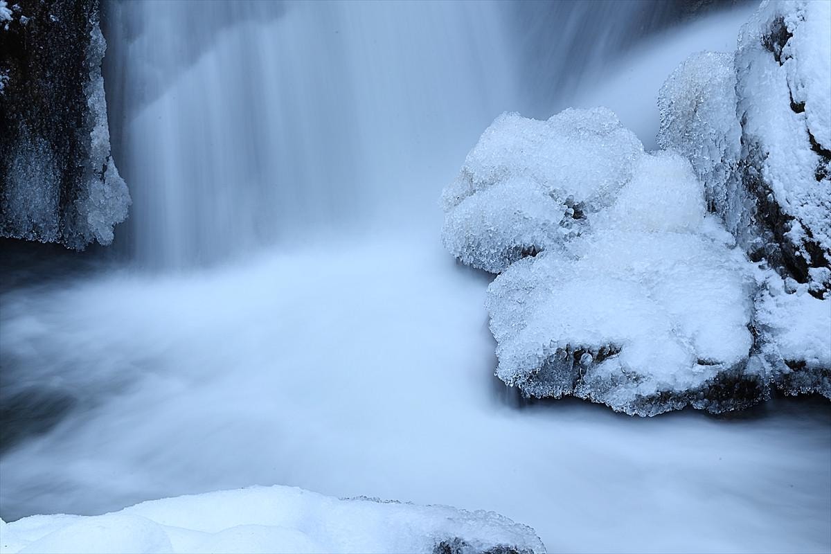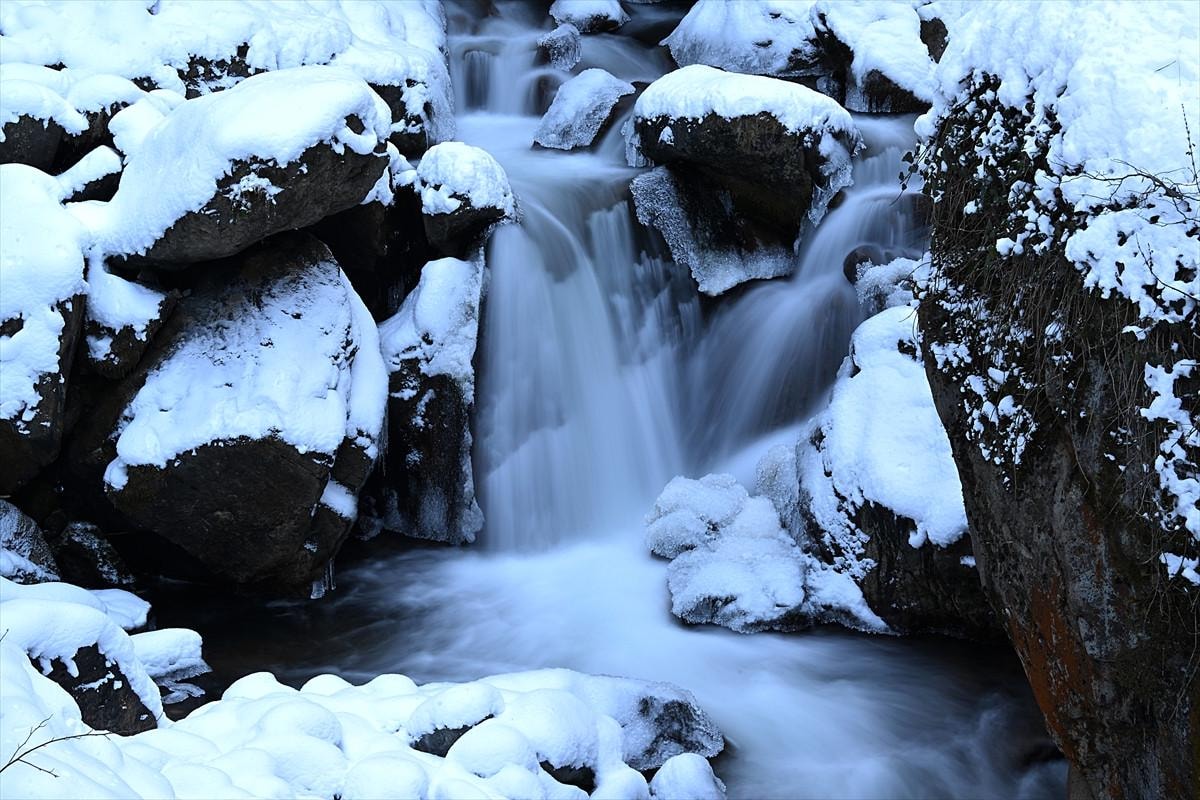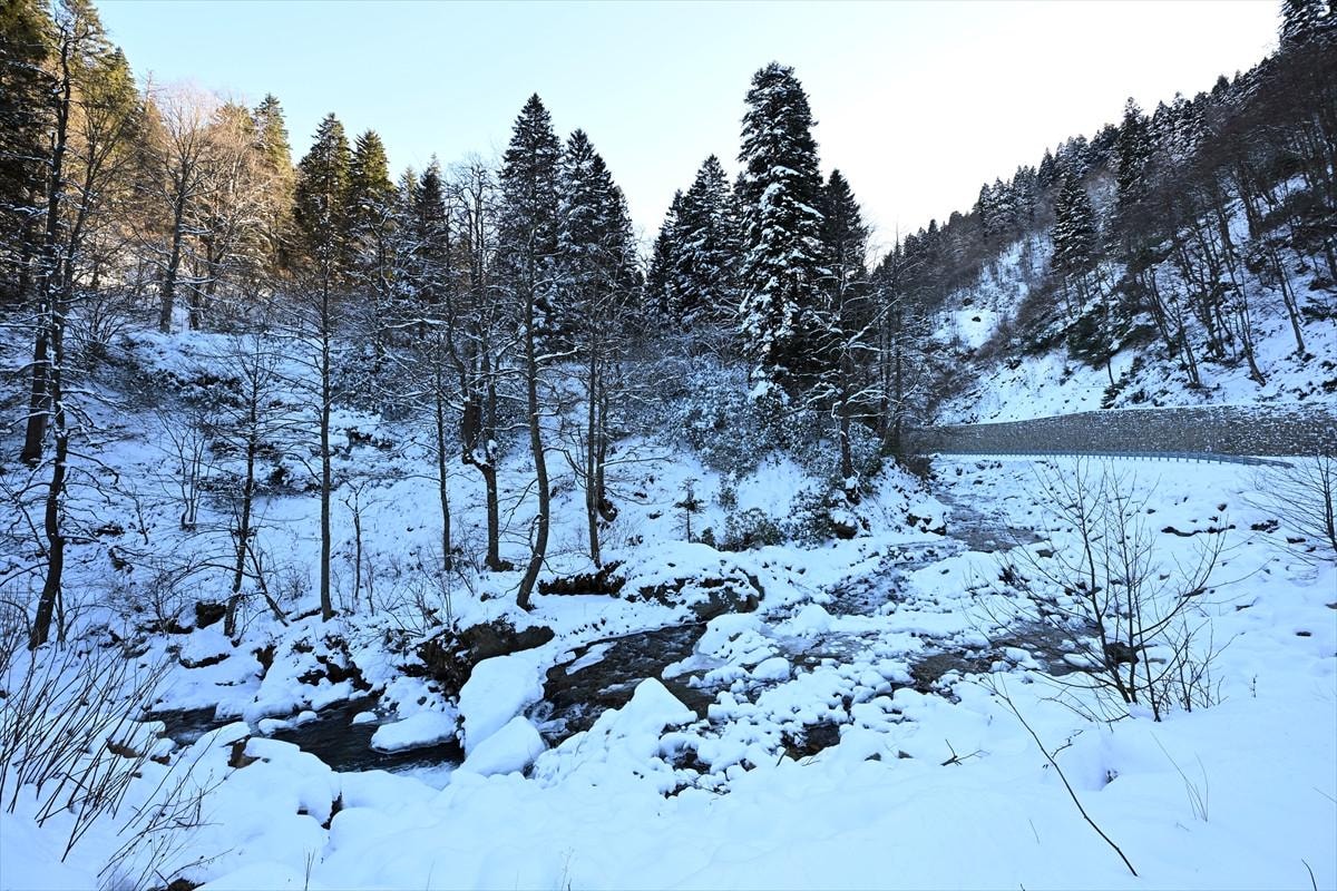 Manzarasıyla görenleri etkileyen bölgede bulunan şelaleler de karla kaplandı.