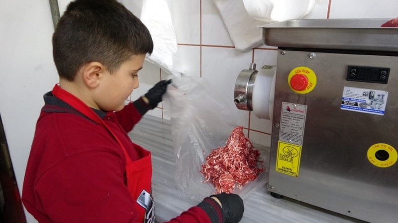 Melih, köfte ve kuşbaşı hazırlayabiliyor, ancak babasının güvenliği için kemikli etleri makinede yapmasına izin verilmiyor. Küçük kasap, hem mesleğe merakı hem de sosyal medyadaki popülerliği ile Trabzon’da adından söz ettirmeye devam ediyor.