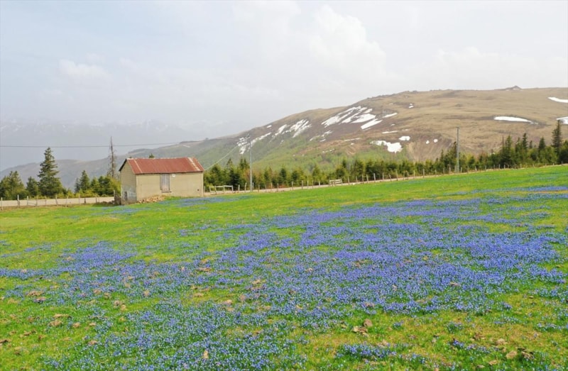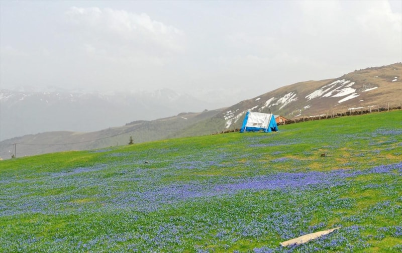 Trabzon Barma Yaylası mavi çiçeklerle süslendi. İlkbaharın gelişiyle birlikte Doğu Karadeniz yaylaları, ziyaretçilerine eşsiz manzaralar sunuyor.