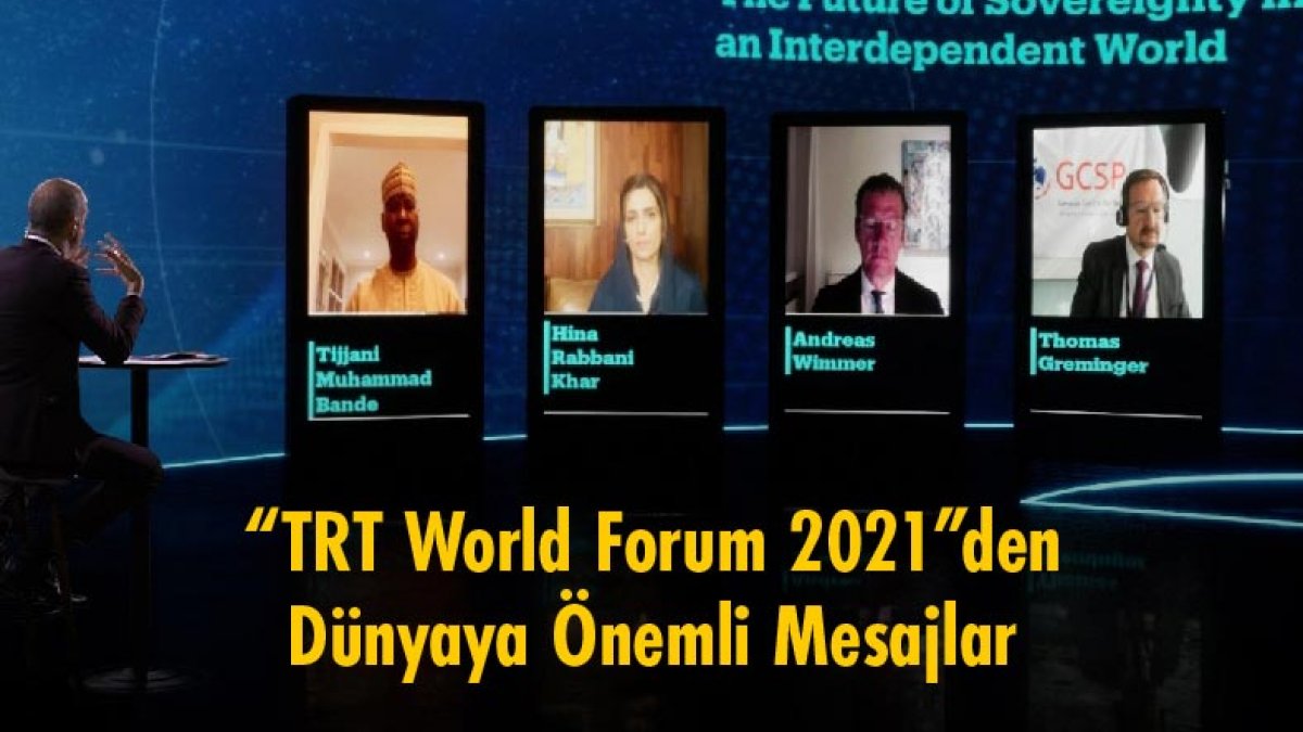 Cumhurbaşkanı Recep Tayyip Erdoğan, Cumhurbaşkanlığı İletişim Başkanı Fahrettin Altun ve TRT Genel Müdürü Mehmet Zahid Sobacı’nın açılış konuşmalarıyla başlayan TRT World Forum 2021’in ilk gününde konuşulan konular uluslararası kamuoyunda da ilgi gördü. Birinci gün masaya yatırılan “Karşılıklı Bağımlılığın Dünyasında Egemenliğin Geleceği”, “Küresel Yönetişim ve Çok Kutupluluğun Getirdiği Sınamalar ve Fırsatlar” ve “Ortadoğu'da Yeni Düzenlemelere Doğru: Türk-Arap İlişkilerinin Geleceği” başlıklı oturumlarda önemli konulara değinildi.