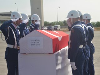 Daha sonra katafalktan askerler tarafından omuzlara alınan şehidin naaşı, uçağa konularak memleketi Adana’ya gönderildi.