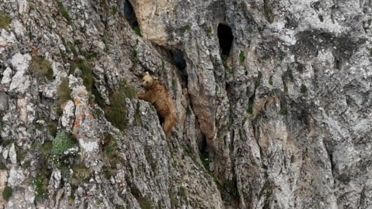 Tunceli’nin Pülümür Vadisi’nde doğa gezisine çıkan fotoğrafçılar Özgür Şahin ve Mehmet Fidan, kayalık bir yamaçtan ustalıkla inen bir bozayıyla karşılaştı. Yanlarındaki drone ile ayının dikkatli ve dengeli inişini görüntüleyen ikili, doğanın benzersiz bir anına tanıklık etti.
