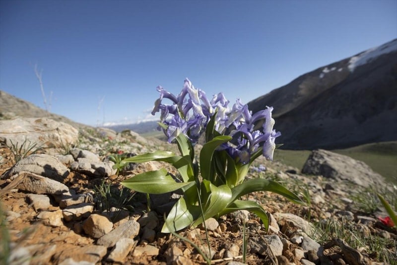 İlçede karın erimeye başladığı Munzur Dağları'nın etekleri de süsen, kırmızı lale ve kar çiçekleriyle renklendi.