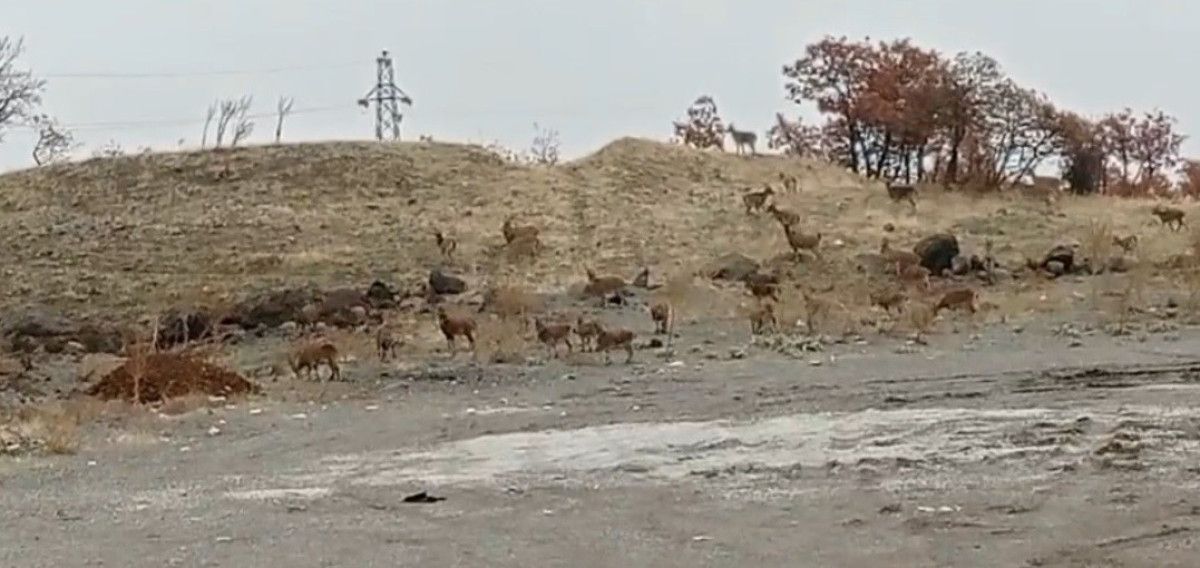 Merkeze bağlı Türüşmek köyü kırsalında, yol kenarında Dünya Doğa Koruma Birliğince (IUCN) yayımlanan 'Nesli Tükenme Tehlikesi Altında Olan Türlerin Kırmızı Listesi'ndeki yaklaşık 50 dağ keçisinden oluşan sürü, görüntülendi.