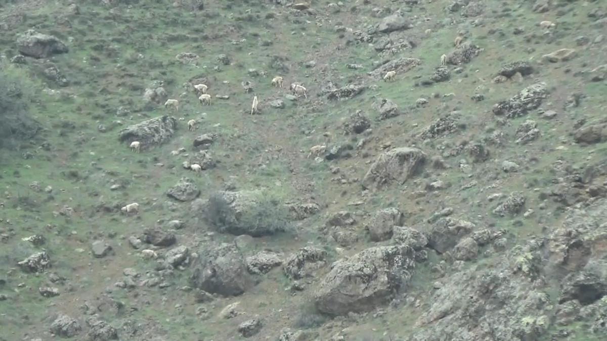 Tunceli'nin Pülümür ilçesinde yaban keçileri yeşermeye başlamış çayırlarda sürü halinde karınlarını doyururken görüntülendi.