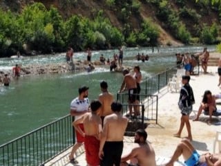 Mevsimin en sıcak günlerden birinin yaşandığı Tunceli'de halk, Munzur plajlarına akın etti.