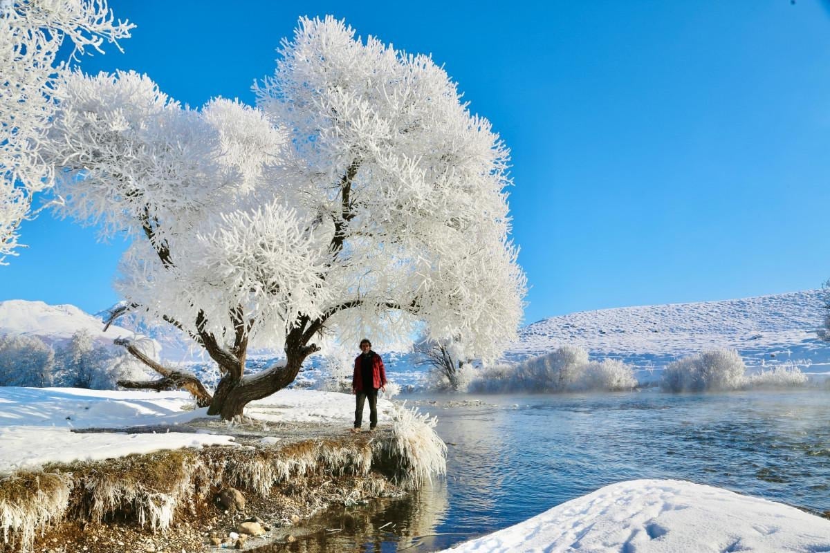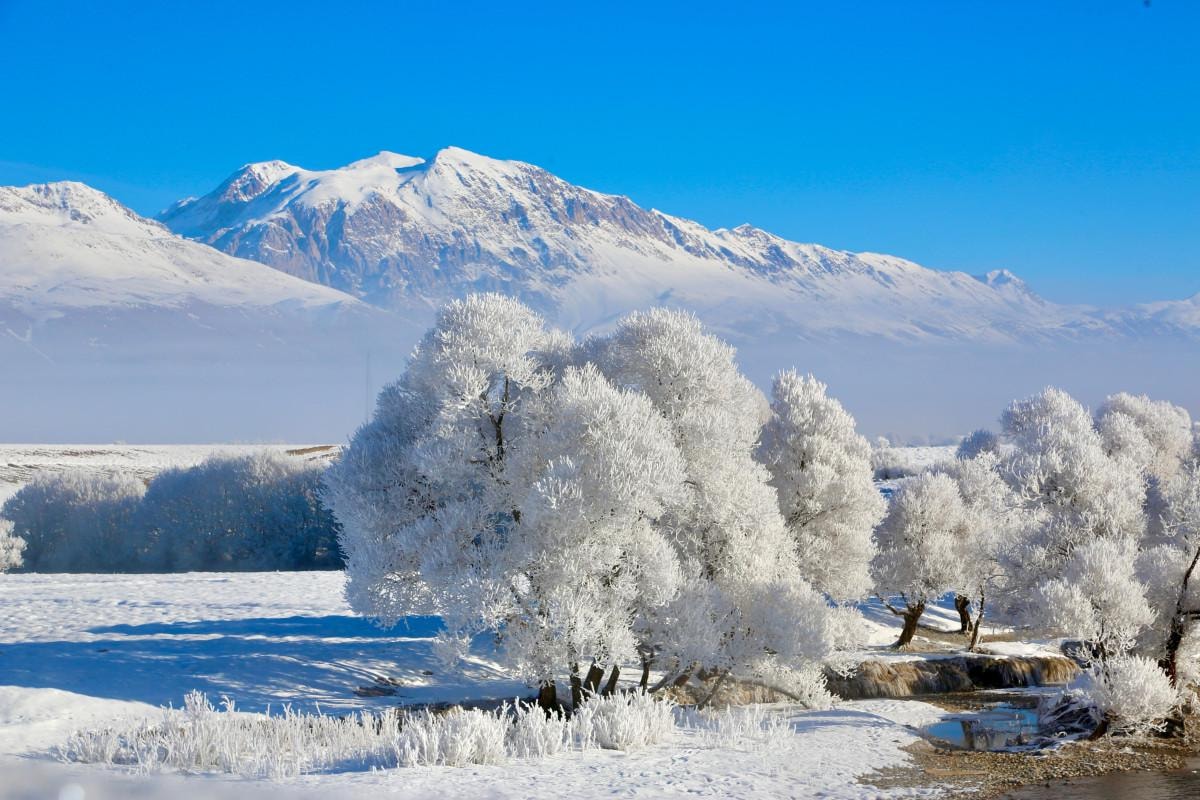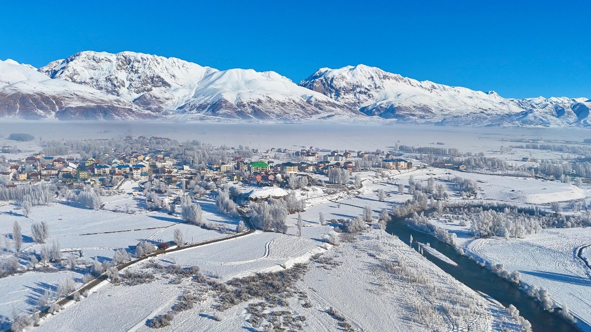 Karla kaplı dağların, kırağıyla beyaza bürünmüş ağaçların, gökyüzüyle ve ilçeden doğan Munzur Nehri ile oluşturduğu manzara havadan görüntülendi. Bölgedeki güzel görüntüler de ilgi çekti.