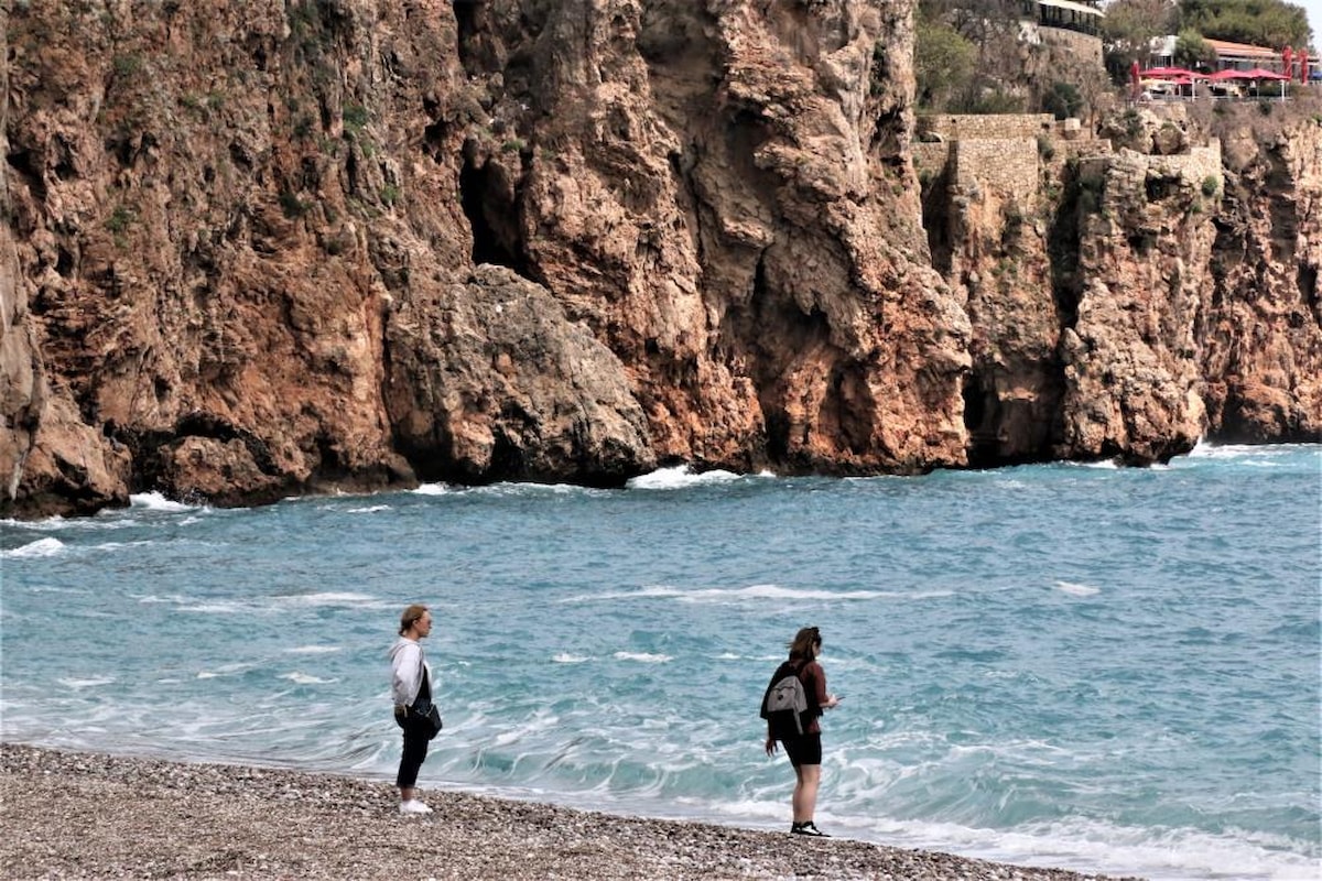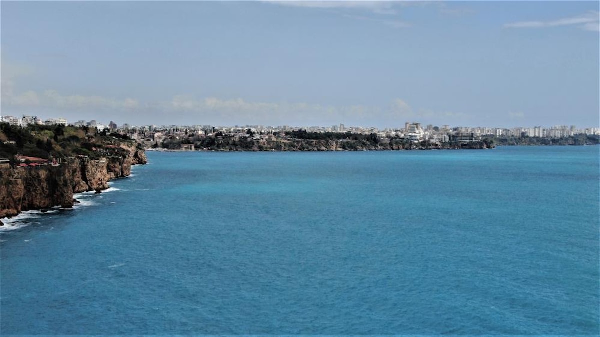 Turizmin başkentinde şimdilerde deniz ve hava sıcaklığının eşitlenmesiyle Konyaaltı Sahili turkuaz renge büründü.