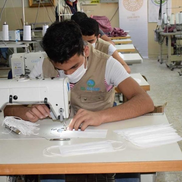 Şanlıurfa Valiliğinden yapılan açıklamaya göre, birlik ve beraberliğe destek sunmak isteyen gönüllülerin çeşitli faaliyetlerde bulunduğu Hayat Eli Derneği üyesi Türk ve Suriyeli 20 gönüllü, maske üretmek için Vali Abdullah Erin'den destek istedi.